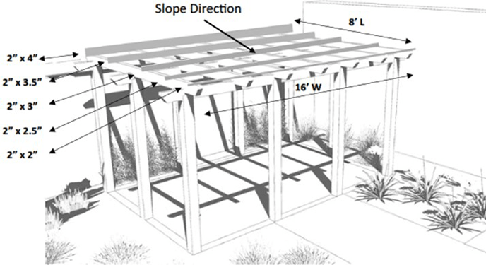 We do not recommend measuring the height (from the ground to top of the pergola) of the front and back of your pergola to get the slope. Patios are often sloped downward from the house, which does not allow for an accurate slope measurement.
